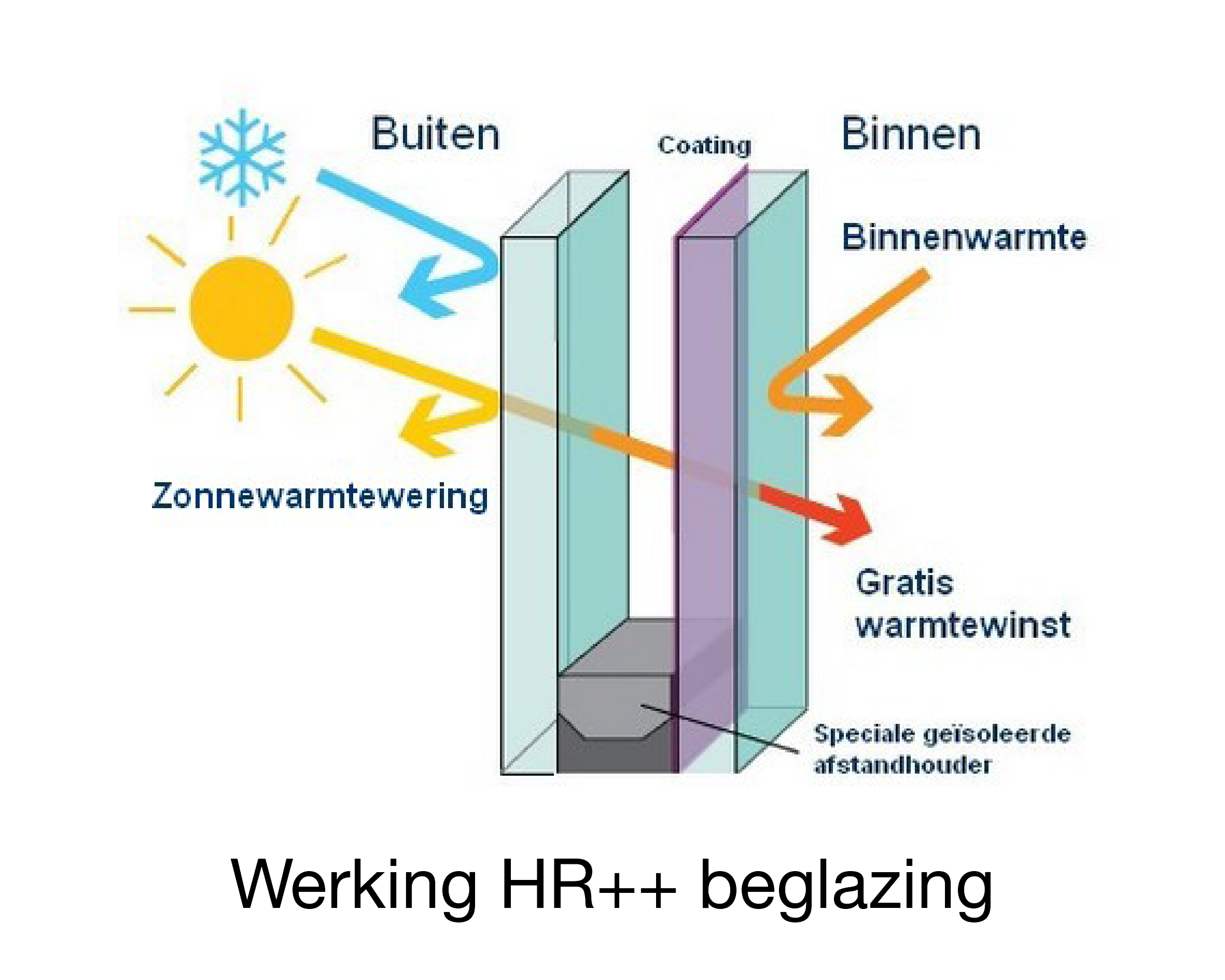 - HR++ isoleert 2 keer zo goed als standaard dubbel glas en 5 keer beter dan enkel glas.