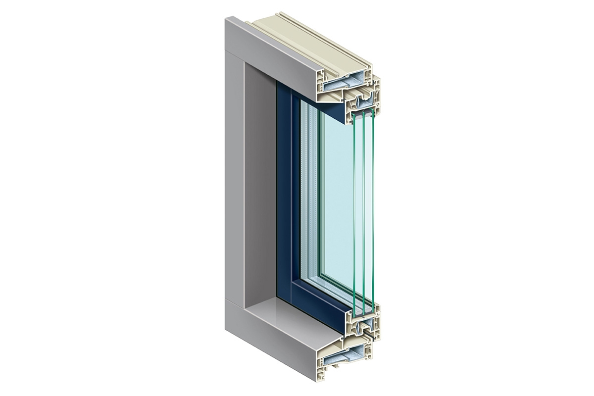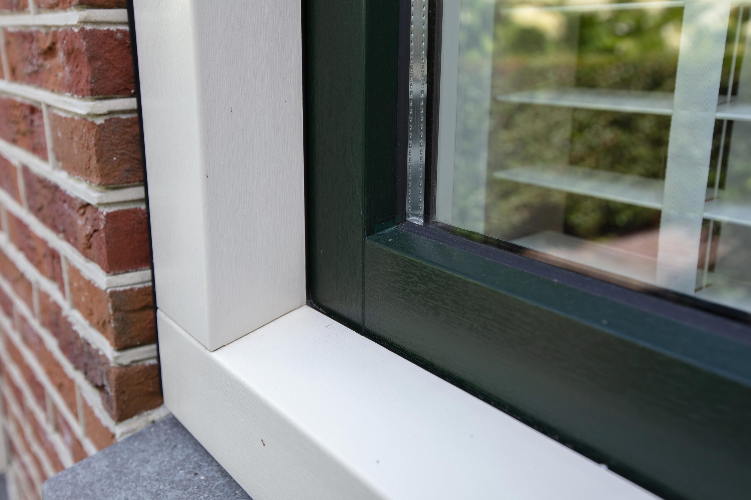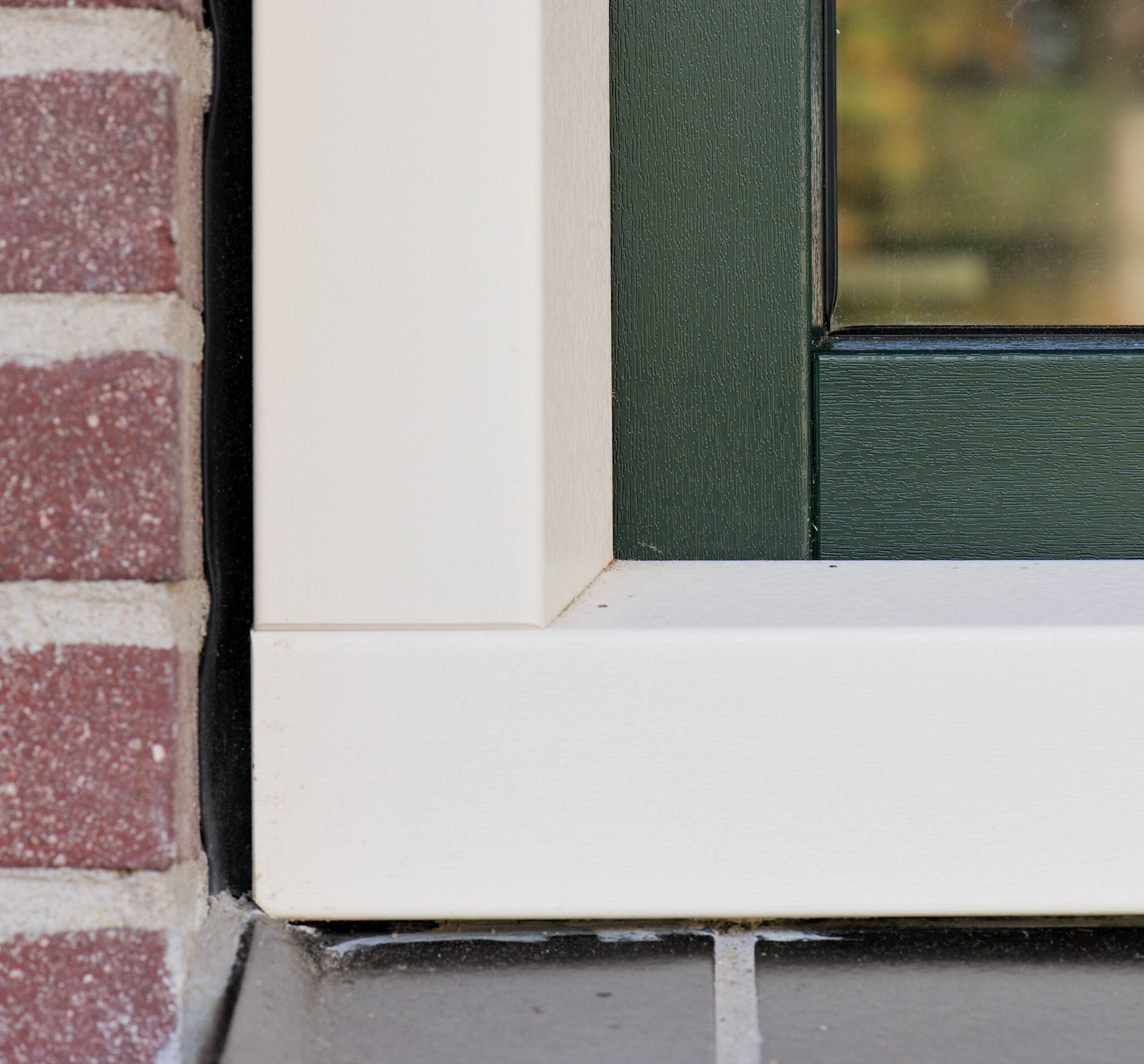 Enkel de onderdorpel is schuin, zoals bij een houten kozijn. De rechte hoekverbinding zorgt voor een volledige houtlook.