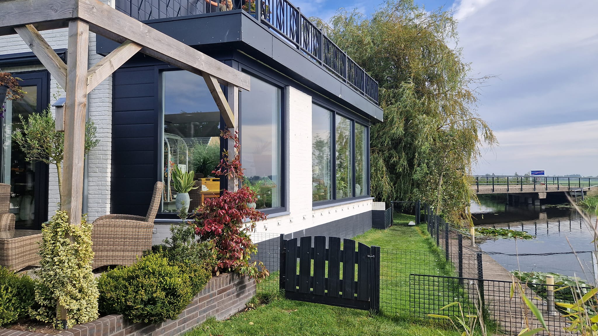 Voor deze woning in Roelofarendsveen hebben we een complete kozijnrenovatie uitgevoerd. Nieuwe en strakke kozijnen geven het huis een moderne uitstraling die perfect past bij de unieke ligging.